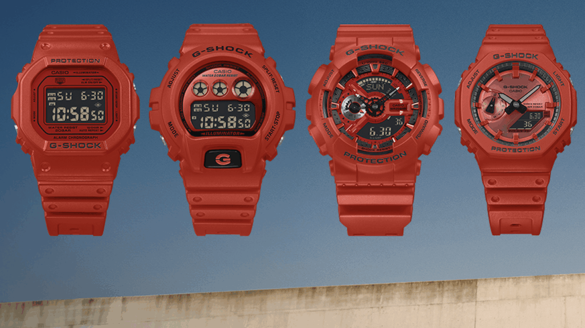 Finalmente, G‑SHOCK reinterpreta cuatro de sus modelos clásicos en la serie ICONIC RED, una colección que destaca por su estética monocromática en el rojo representativo de la marca. Los DW‑5600RRB-4, GA‑110RRB-4A, GA‑2100RRB-4A y DW‑6900RRB-4 incorporan materiales de biomasa y un diseño pensado para estilos de vida activos, desde el skate hasta actividades urbanas de alto movimiento. Esta serie funciona como un regreso al origen, una lectura moderna de piezas reconocidas por distintas generaciones, demostrando cómo los relojes pueden mantenerse relevantes a través del uso del color como elemento narrativo y emocional.