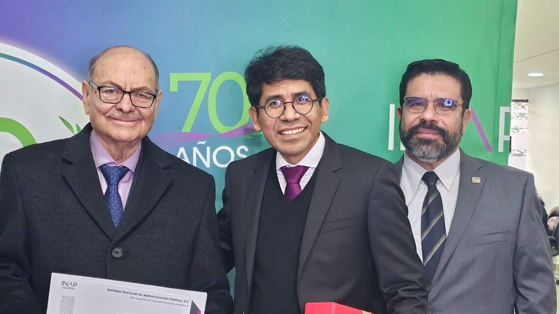 Entrega del reconocimiento a Raúl Gómez Espinosa como nuevo miembro de número del Instituto Nacional de Administración Pública (INAP). Actualmente Gómez Espinosa es director general de la revista Proyección Económica.